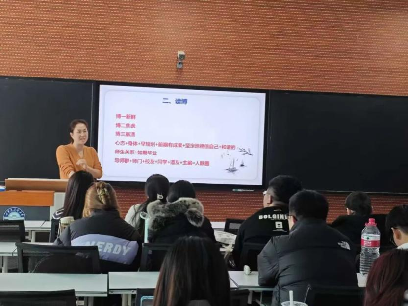 Addressing the topic of future planning, Professor Dong analyzed two main pathways—employment and doctoral studies. She encouraged students to allocate their time and energy wisely between research and practice based on their personal goals. Sharing her own experience of pursuing a doctoral degree, she elaborated on Ph.D. admission requirements at several universities (such as Guangdong University of Foreign Studies) and offered heartfelt suggestions on maintaining a positive mindset and long-term planning. She also encouraged students to actively participate in academic conferences to broaden their horizons, learn from others’ achievements, and continuously improve their own research capabilities.